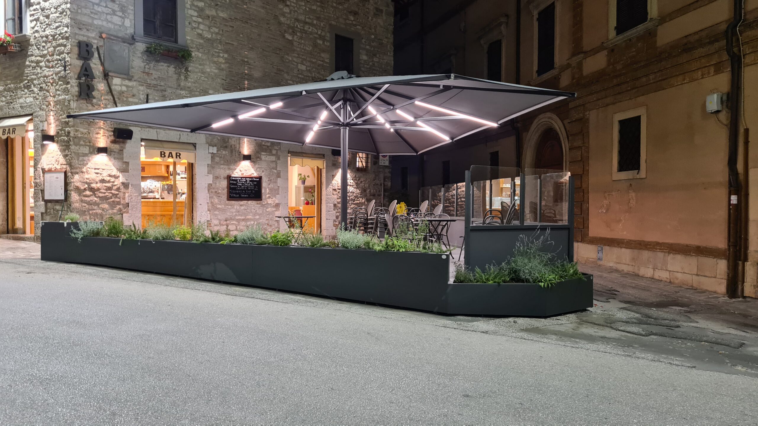 Il nostro ufficio tecnico interno ti affianca in ogni fase della realizzazione dello spazio esterno più adatto alla tua attività commerciale e/o ricettiva, riuscendo a garantire la copertura di ampie aree o spazi ristretti in contesti urbani e centri storici con ombrelloni resistenti alle intemperie e all’uso professionale, ma semplici da gestire.