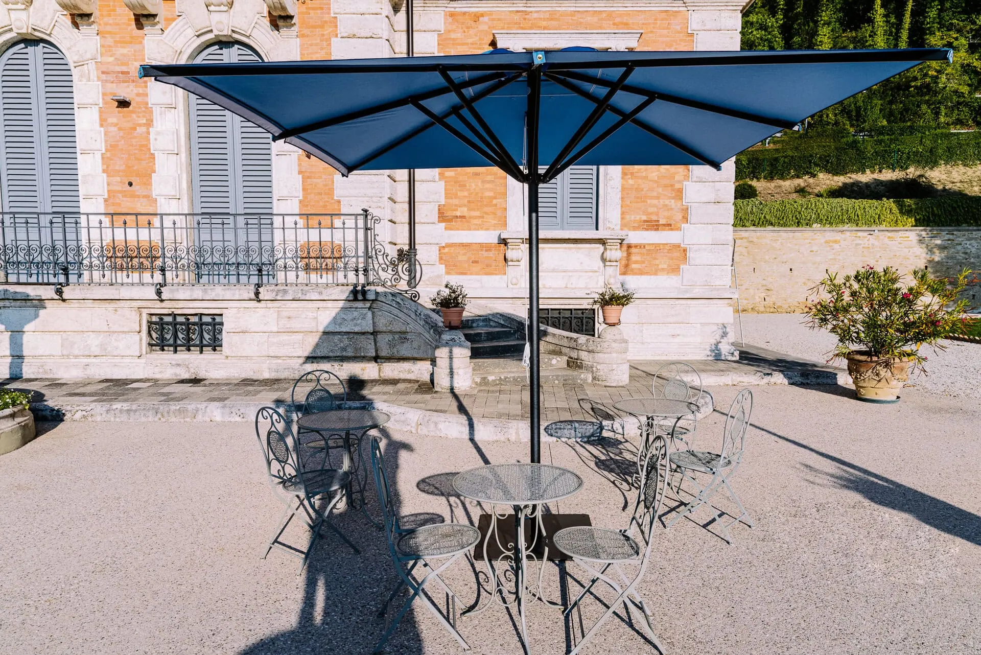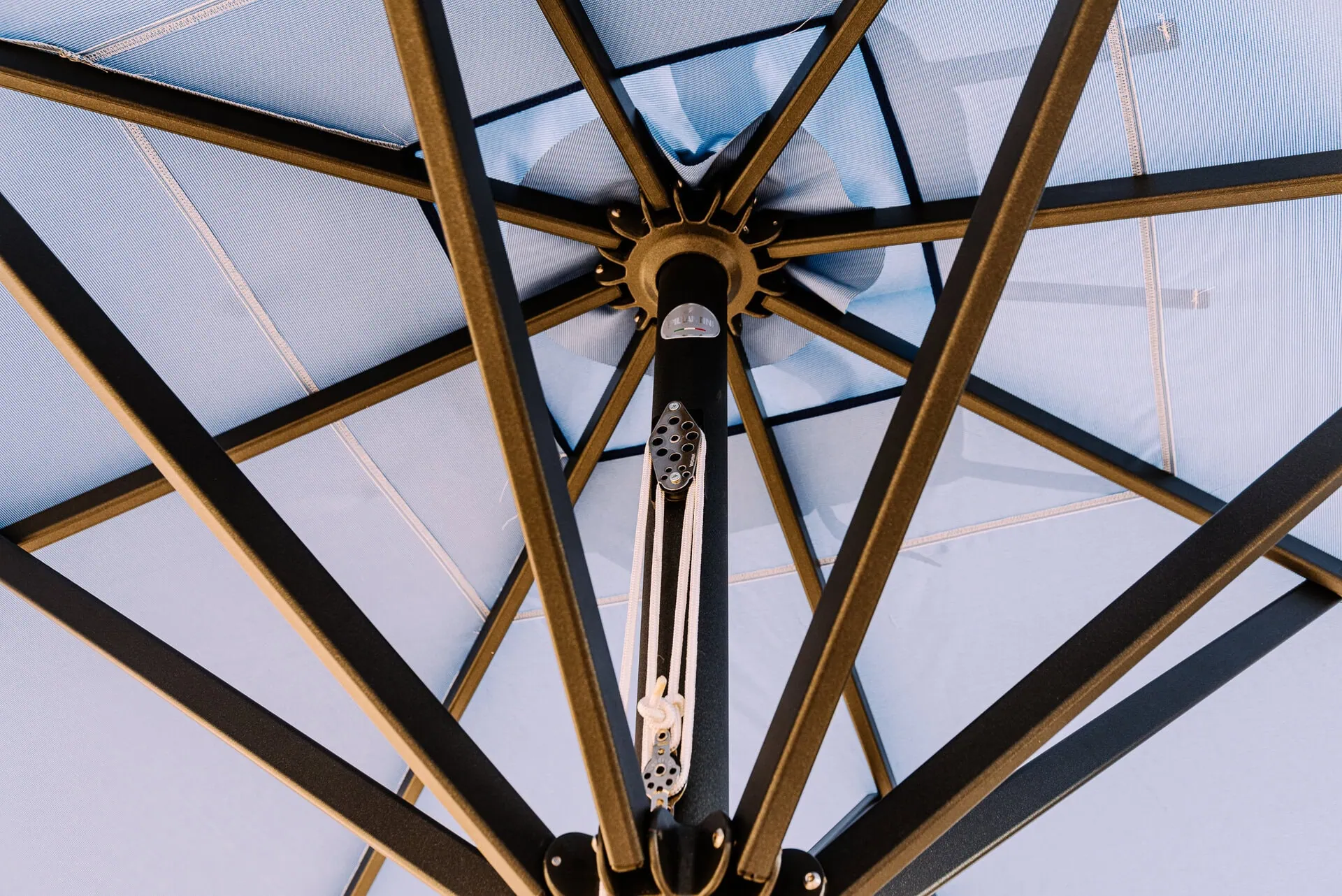 Costruito per essere molto resistente alle condizioni atmosferiche e all’uso professionale, grazie alla sua corona in alluminio e alle stecche rinforzate all’interno.
