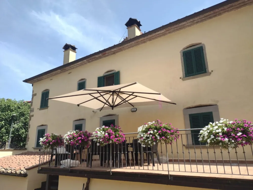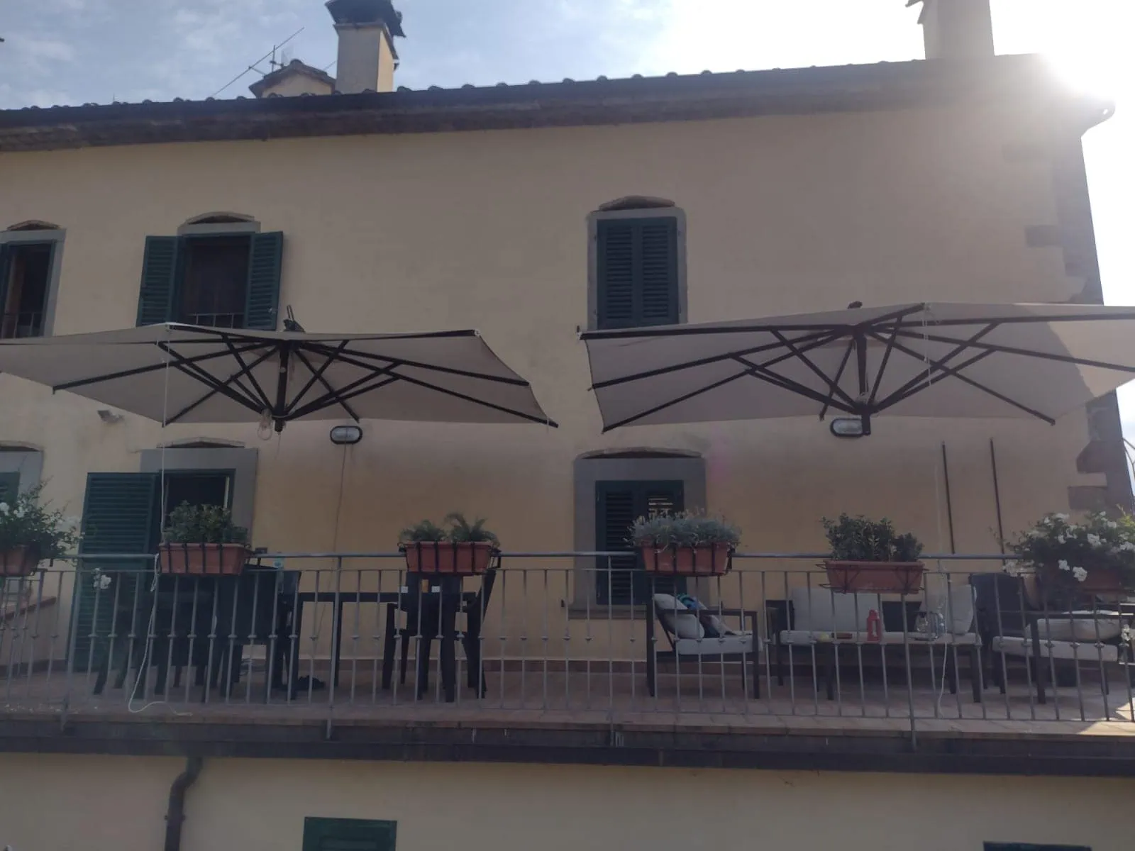 Pannelli laterali di chiusura in tessuto acrilico e crystal H 2400 mm con sistema battipioggia. Aste telescopiche per la stabilità della struttura. Porta di ingresso avvolgibile.