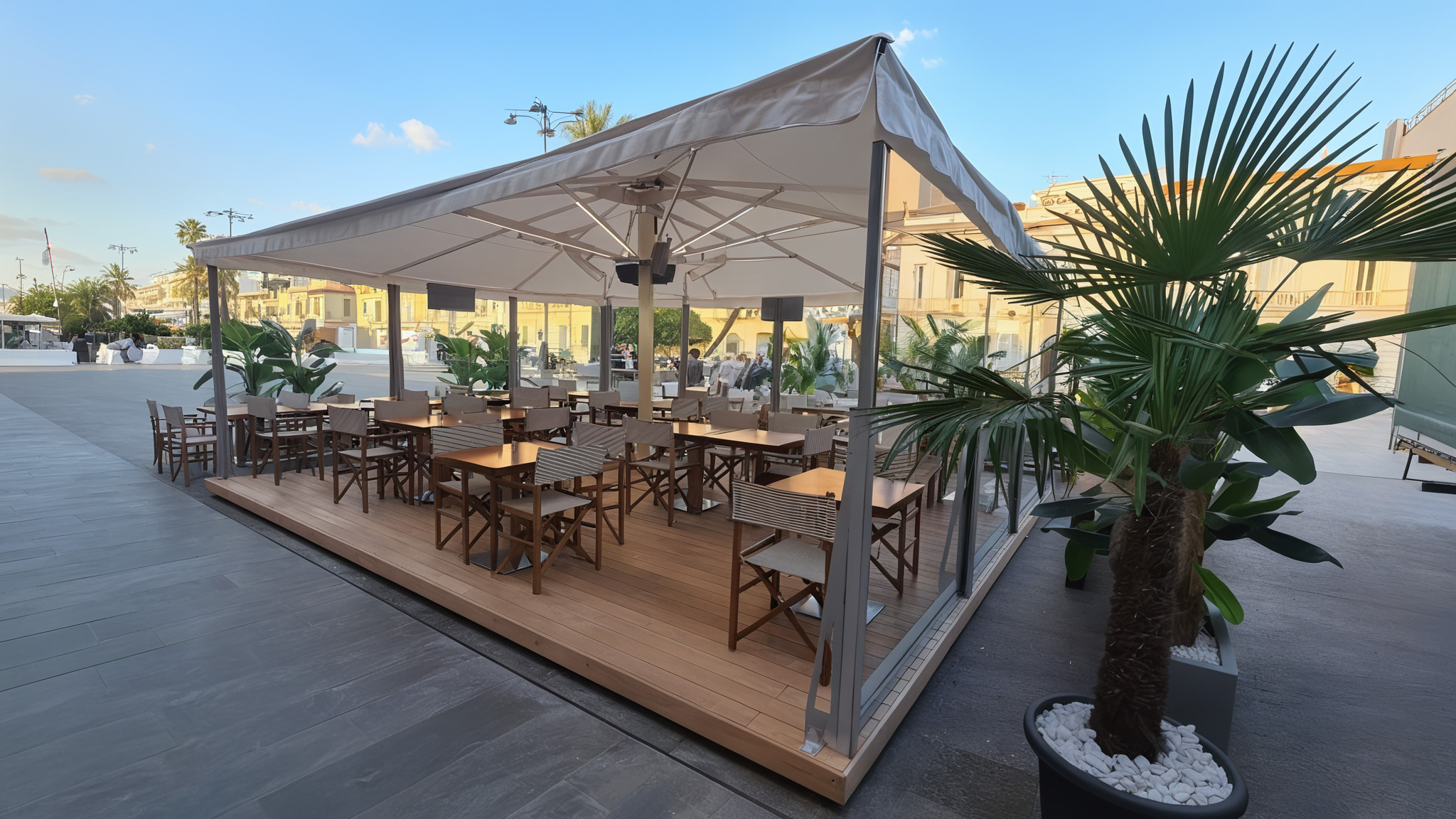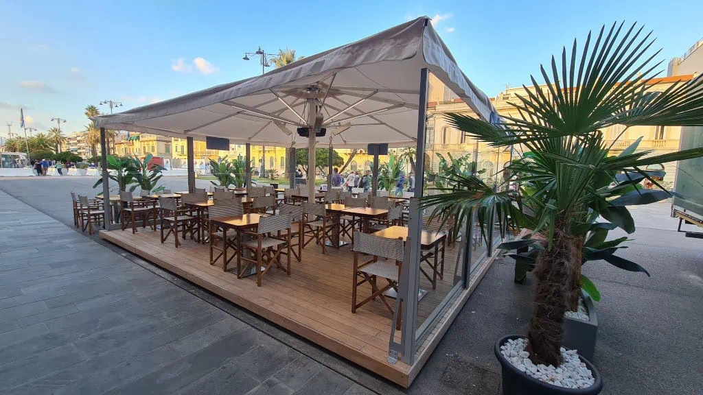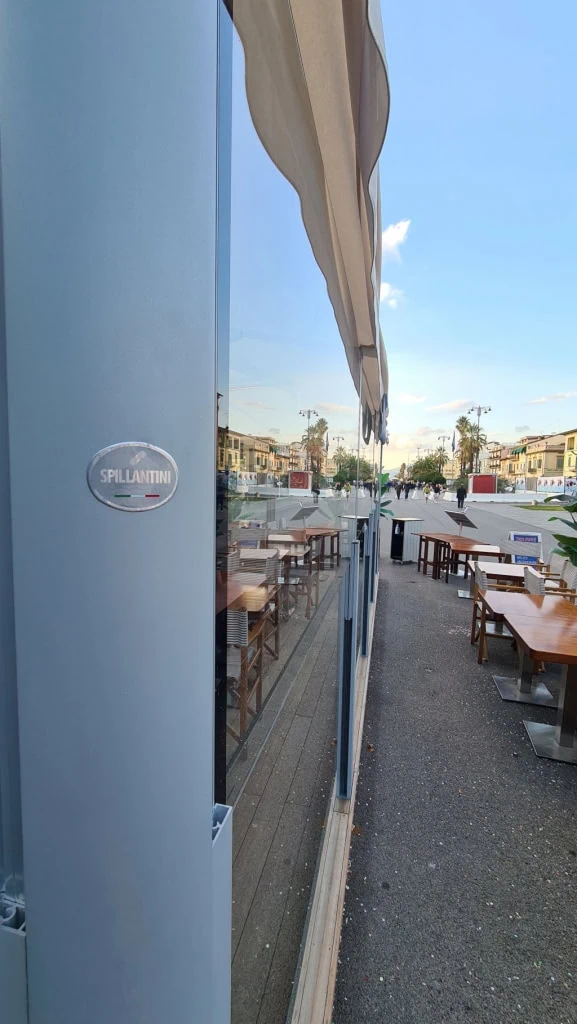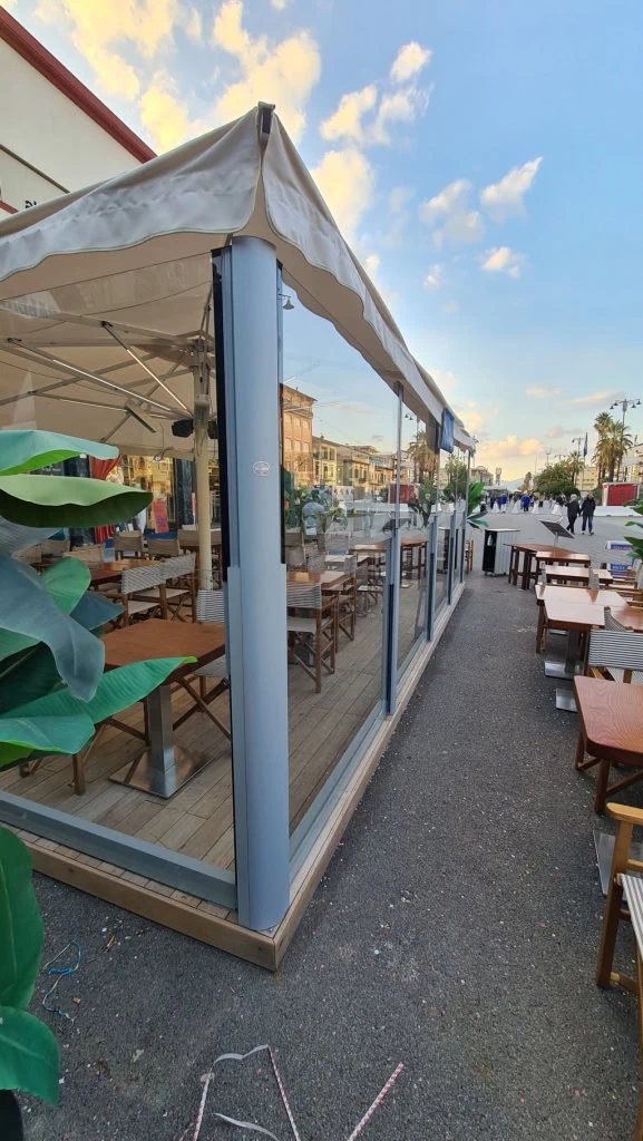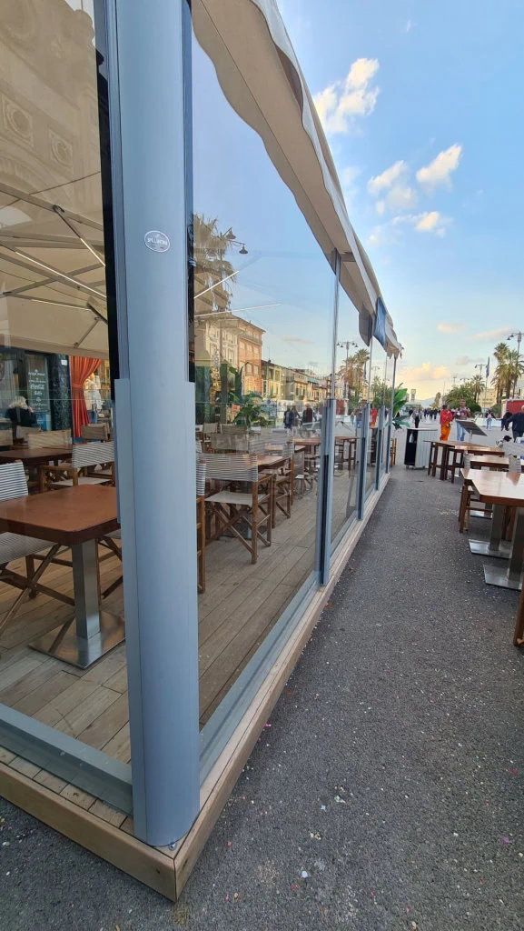 Struttura modulare tutto vetro semi-automatica regolabile senza stop intermedi, o elettrica regolabile all’altezza desiderata. Disponibile in altezza cm. 180 o cm. 220.