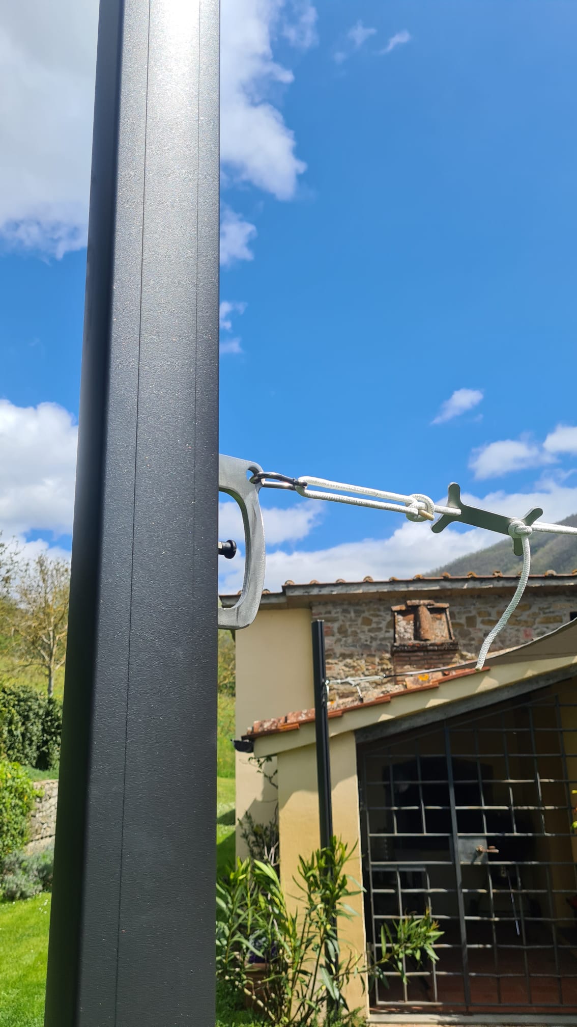 Le vele possono essere montate sia su palo a terra sia su parete, grazie a componenti robusti e di facile fissaggio: