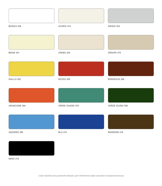 Cartella colori (versione resinata disponibile esclusivamente nelle colorazioni contrassegnate, in alto, dal